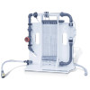 La pressurizzazione dei manometri è facilitata da una pompa manuale. Il circuito e il manometro sono fissati a una struttura di supporto, che si trova sul piano di lavoro del banco idraulico. Il banco è utilizzato come fonte di approvvigionamento idrico e per la calibrazione volumetrica di ciascun misuratore di portata.