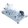 Una pompa a ingranaggi azionata da motore montata su un basamento in acciaio inossidabile con un serbatoio dell'acqua e tubazioni per la circolazione continua. La testa della pompa e il serbatoio dell'acqua sono realizzati in acrilico trasparente per la massima visibilità.