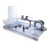 La voluta della pompa e il serbatoio dell'acqua sono realizzati in acrilico trasparente per la massima visibilità. Allo stesso modo, i tubi sono realizzati in PVC trasparente. Le valvole azionate manualmente all'ingresso e all'uscita della pompa consentono il controllo del flusso e facilitano anche lo studio degli effetti di aspirazione.
